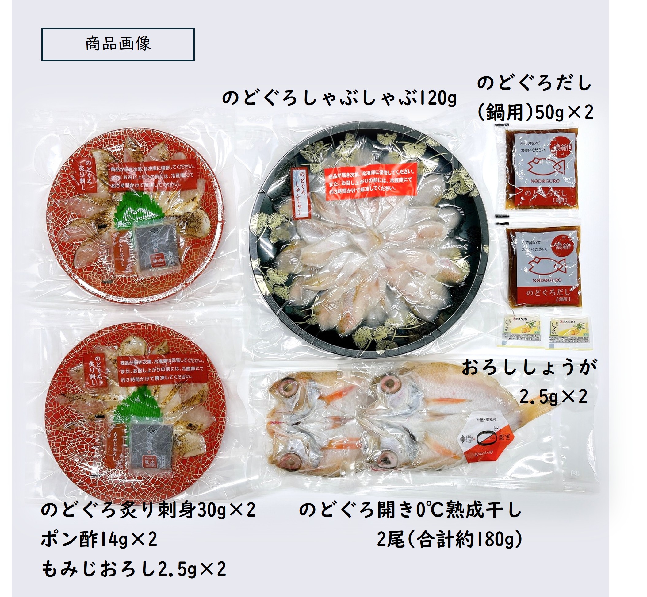 地形に恵まれ餌が豊富な対馬沖で獲れた、脂のりの良いのどぐろを一尾一尾手作業で炙り刺し・しゃぶしゃぶ・開き物に仕上げた、のどぐろを余すことなく堪能できるセットです。