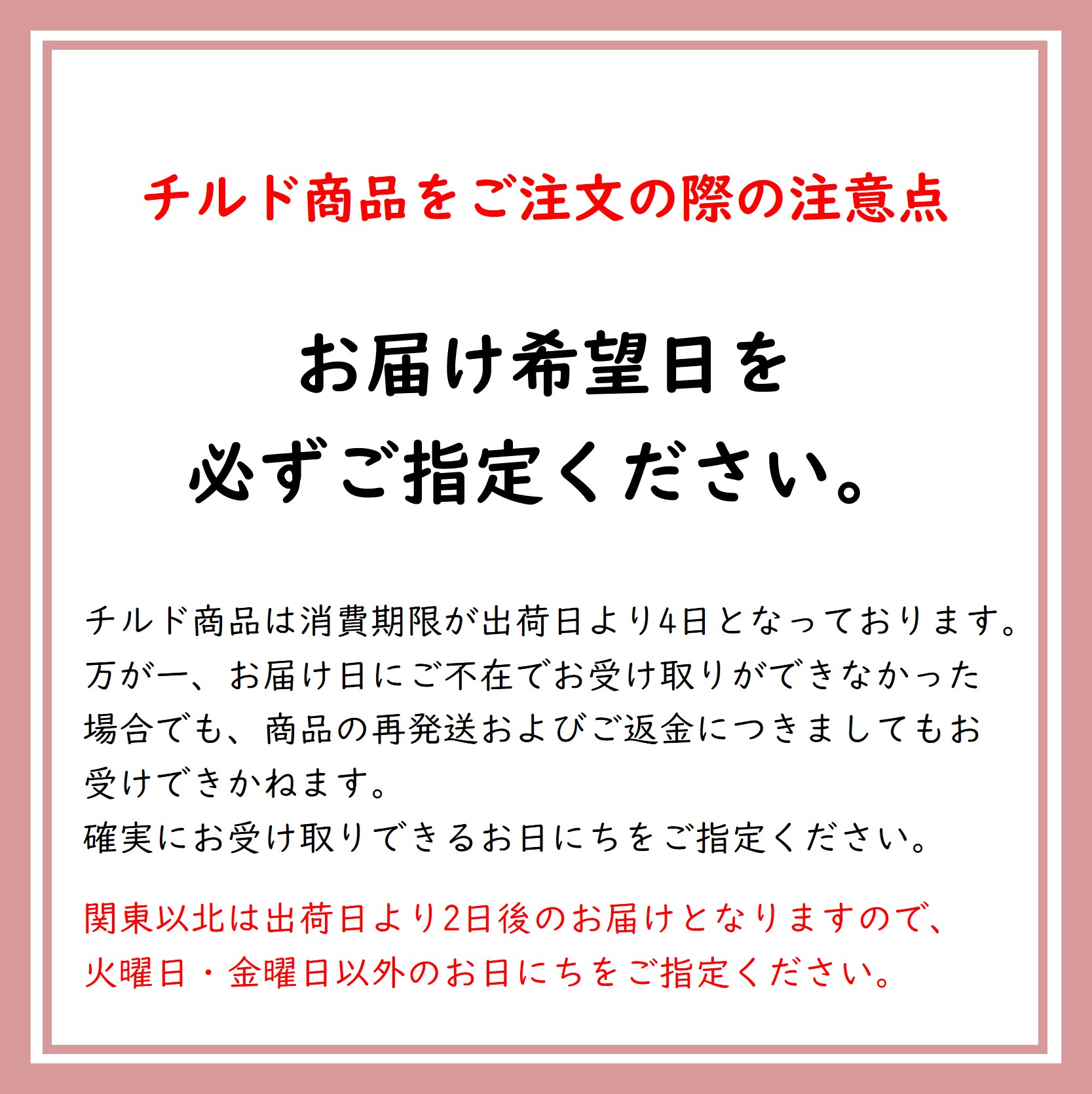 注:必ずご在宅のお日にちをご指定ください。