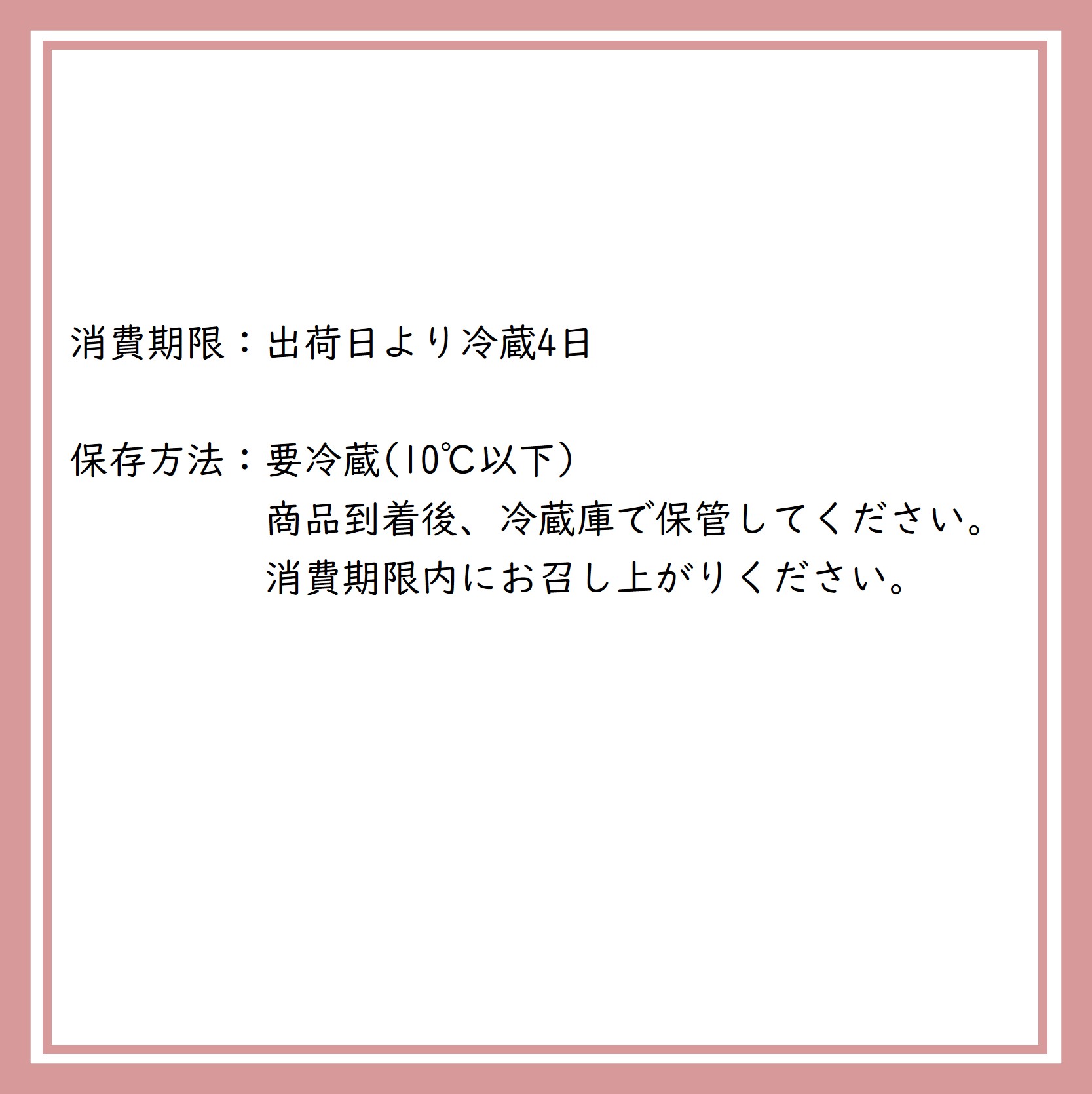 <消費期限>出荷日(製造日)より冷蔵4日